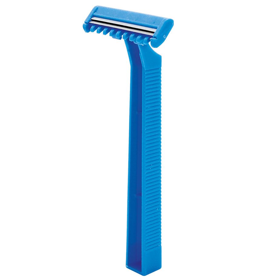 Einweg-Rasierer mit 2 Edelstahlklingen und blauem ABS-Griff und -Kopf. Ideal für hautfreundliches Rasieren. Nicht steril.