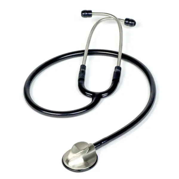 Hochwertiges Flachkopf-Stethoskop aus Edelstahl, mit Ø 43,3 mm Membran, Einschlauchsystem, inkl. Ersatz-Membran und Ohroliven, verfügbar in verschiedenen Farben.
