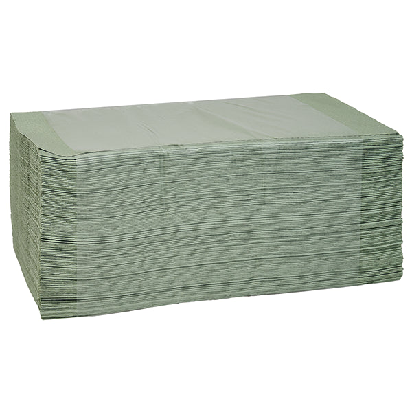 1-lagige Einmalhandtücher, aus umweltfreundlicher Recyclingqualität. Praktische V-Falz, ideal für Spender. In grüner Farbe, Größe: 25 x 23 cm. Verpackt in 1 Karton mit 5000 Stück (20 x 250 Stück) und dem Blauer Engel-Umweltzeichen (RAL-UZ 5).