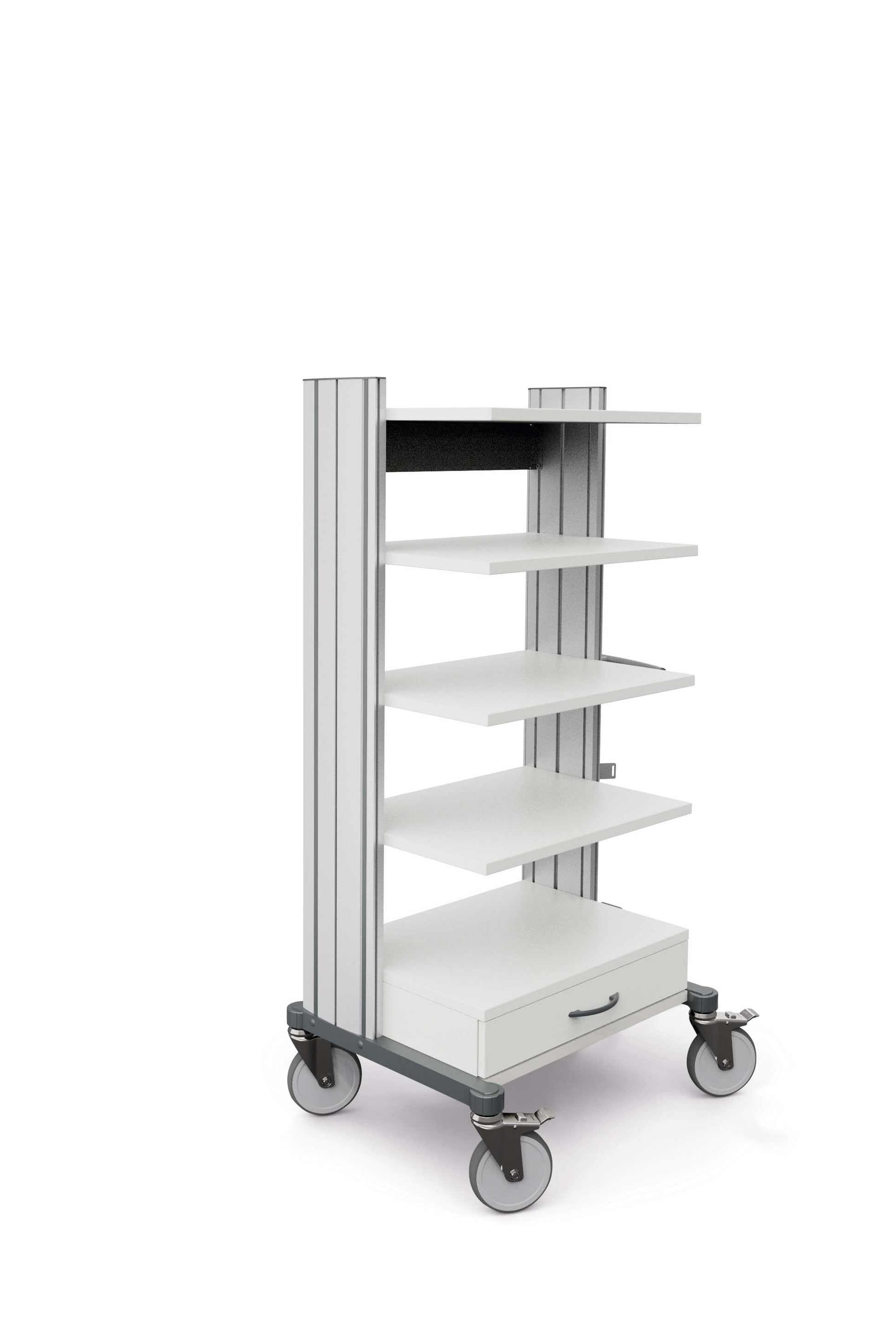 Hochfunktionaler Gerätewagen für den medizinischen Einsatz – ideal für Kliniken, OPs und Versorgungsstationen.