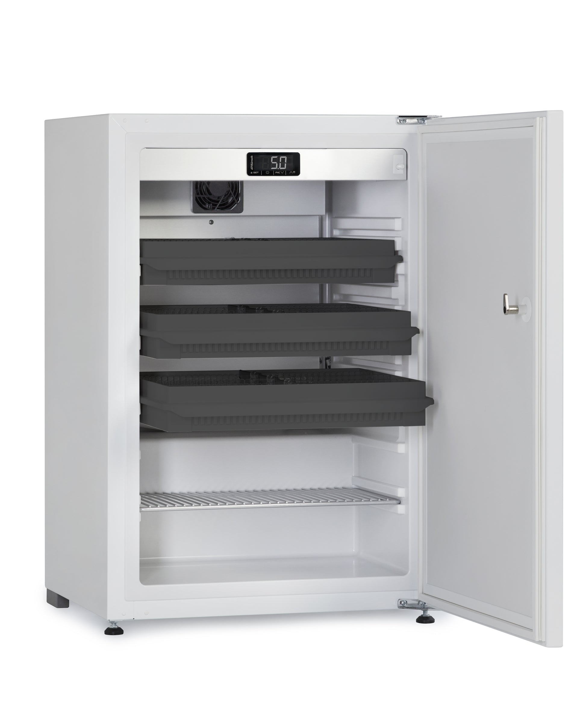 Der Kirsch ESSENTIAL MED 125 ist ein robuster Medikamentenkühlschrank mit einem Volumen von 120 Litern – ideal für die fachgerechte Lagerung von Arzneimitteln und Impfstoffen nach DIN 13277. Dank kompakter Bauweise ist das Gerät ein- und unterbaufähig und eignet sich hervorragend zur Integration in Schrankwände.