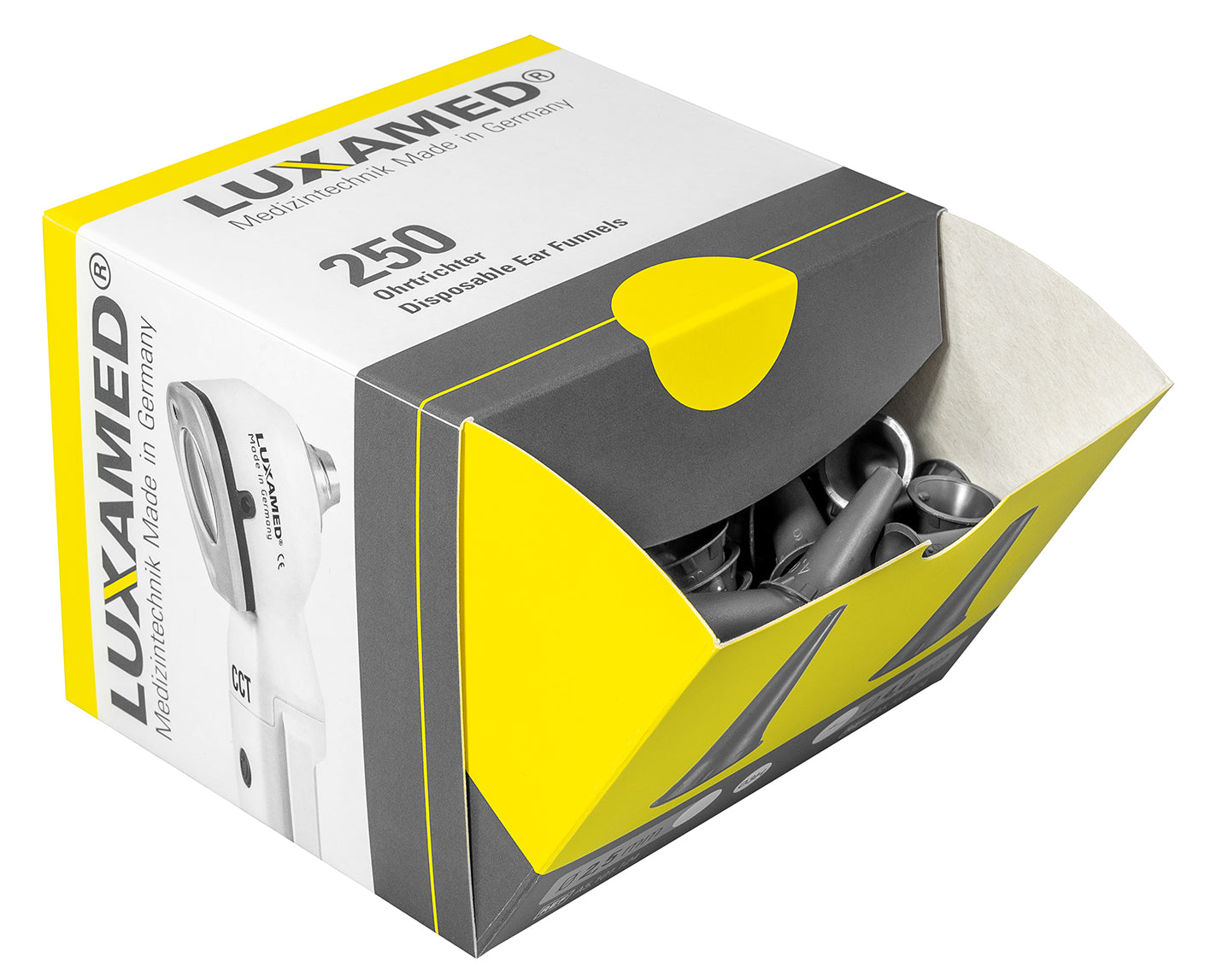 Die Luxamed Einweg-Ohrtrichter in der Größe 2,5 mm sind ideal für die hygienische Otoskopie im Praxisalltag. Sie bestehen aus hochwertigem, recyceltem Polystyrol, sind hautverträglich und geruchslos. Durch ihre präzise Passform sitzen sie sicher auf allen gängigen Otoskopen. Erhältlich in mehreren Verpackungsgrößen – perfekt angepasst an Ihre Anforderungen.