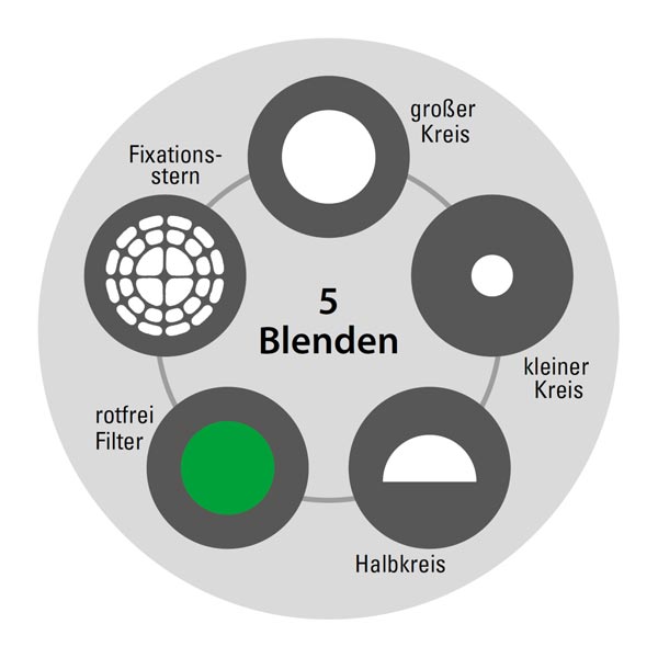 Korrekturbereich: +20 bis -20 D (± 1, 2, 3, 4, 6, 8, 10, 15, 20 D)