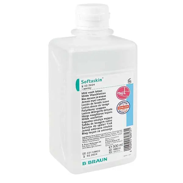 Softaskin® Waschlotion von B. Braun ist eine besonders milde, hautverträgliche Waschlotion zur Hände- und Körperreinigung. Sie ist farbstofffrei, seifenfrei und besitzt eine allergenarme Parfümierung, was sie ideal für den Einsatz in Kliniken, Arztpraxen, Pflegeeinrichtungen und im häuslichen Bereich macht.