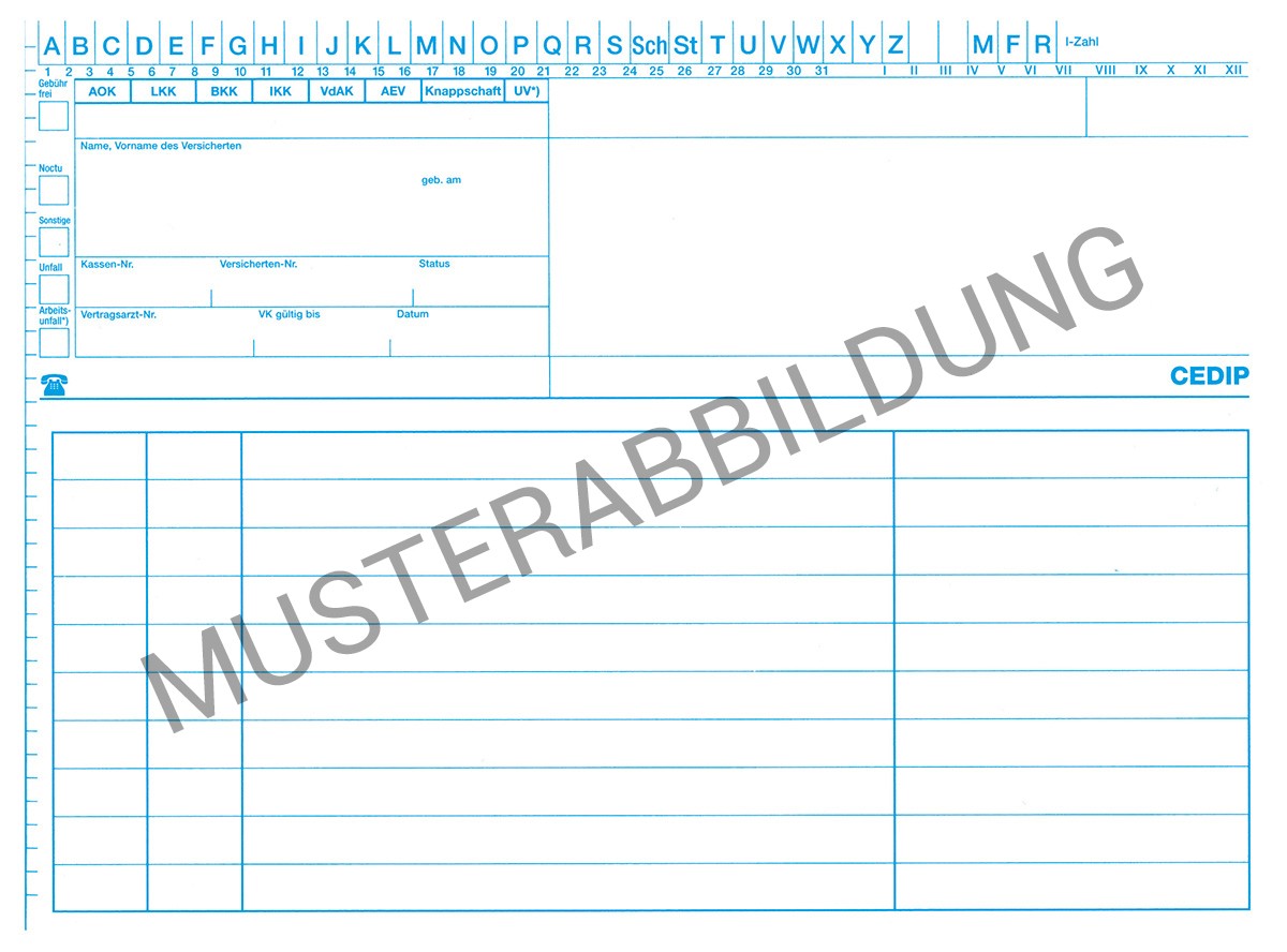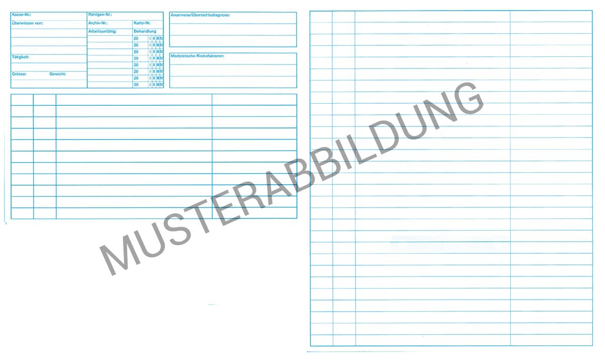 Lose Unterlagen wie Überweisungen, Befunde oder Rezepte sind dank der geschlossenen Seite zuverlässig geschützt. Die Mappe besteht aus stabilem 190 g holzfreiem Karton und ist bereits gebrauchsfertig gefalzt, was sie besonders robust und sofort einsatzbereit macht.