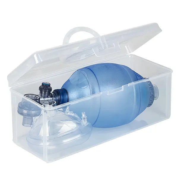 Stabiler, transparenter Transportkoffer für Clearline Beatmungsbeutel – kompakt, robust und ideal für den Rettungsdienst.