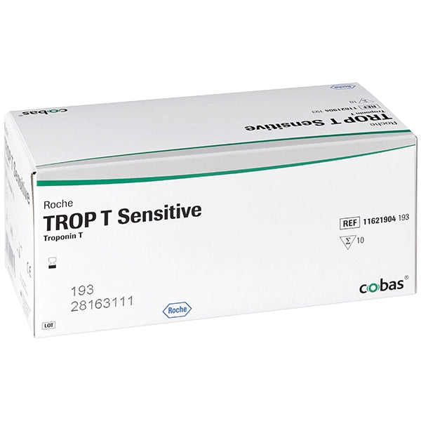 Der Trop T Sensitive Schnelltest von Roche Diagnostics ist ein zuverlässiger Schnelltest zur frühzeitigen Diagnose eines Herzinfarkts. Er dient dem qualitativen Nachweis von kardialem Troponin in venösem Heparin- oder EDTA-Blut. Der Test ist einfach in der Anwendung und ermöglicht eine rasche Auswertung innerhalb von ca. 15 Minuten. Ein positives Ergebnis liegt vor, wenn der Schwellenwert von 0,1 ng/ml überschritten wird. Die Tests sind in zwei Varianten erhältlich – entweder als 5er-Packung mit Dosierpipetten oder als 10er-Packung ohne Pipetten.